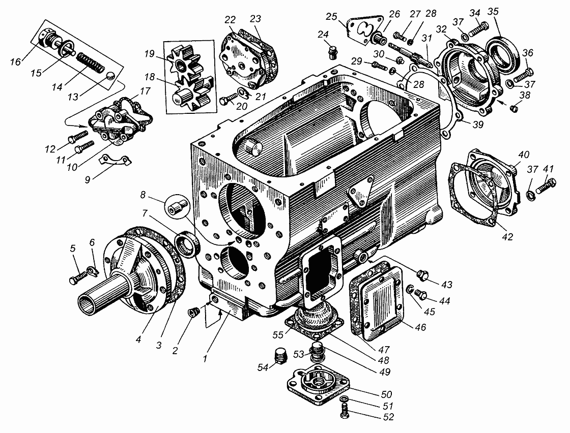 Картер и насос масляный коробки передач МАЗ 504В (Чертеж ЂЂЂ 75: список деталей, стоимость запчастей). Каталог 2005г.